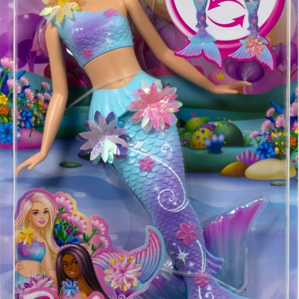 Make a splash with this Barbie Flower Magic Mermaid doll featuring surprise flowers that bloom!