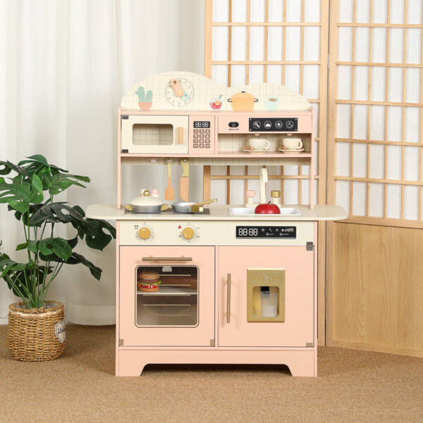 Wooden Kitchen – Pink with Coffee Counter & Fridge