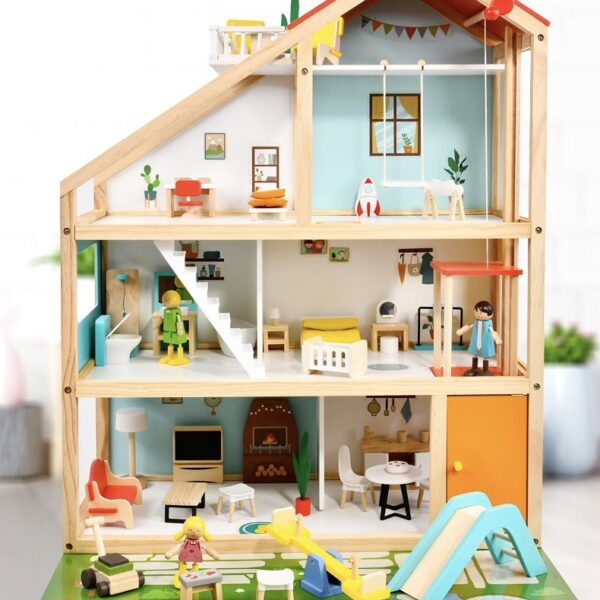Includes 1 doll, 1 baby, 1 highchair, and 7 accessories.