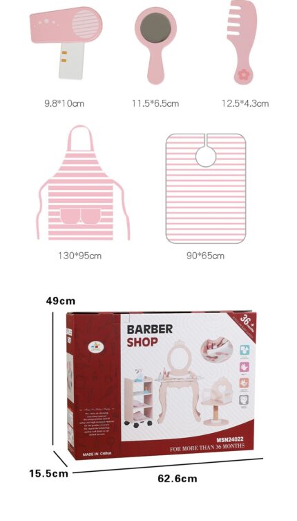 The wooden barber & vanity set is perfect gift for your princess on her birthday. The ultimate toy for pretend play.
