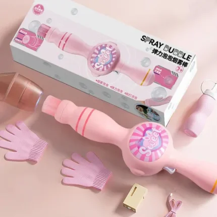The elastic bubble fog wand or magic smoke bubble machine is a popular toy that creates bubbles filled with smoke that are elastic and can be clapped or bounced on your hand without popping especially when wearing the included gloves. It produces smoke-filled bubbles that are more durable than regular bubbles. It often features music & LED lights for a more immersive experience. The package includes the bubble blower wand, a pair of gloves, bubble solution m an atomizer (for the fog effect) , a charging cable & a meauring cup. Available in 2 colors : Pink & Blue.