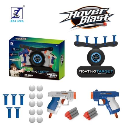 The hover shooting toy with 2 blaster guns, 10 shooting darts and 10 floating balls. Before use, it needs to be installed four AA batteries.