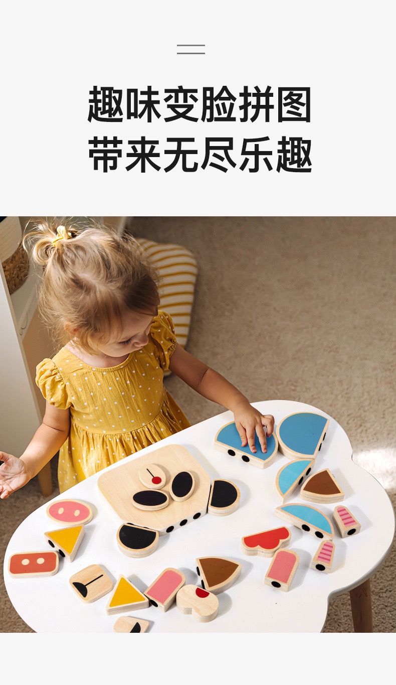 The wooden Montessori puzzle like allows kids to explore with animals & discover diverse species. Available in 2 themes : Characters & Animal Change Face Building Blocks.