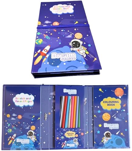 The scratch & coloring book set is the perfect carry along actvitiy book & return gift. Get it now. Available in Astro Space & Unicorn theme.