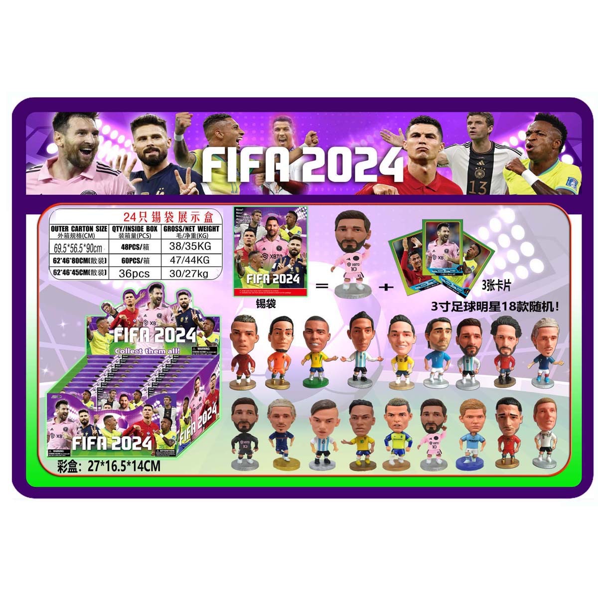 Unbox the stars of football figurines . Collect them all. Each pack comes with 3 cards & one character. One box includes 36 packs. Perefct as a return gift option.