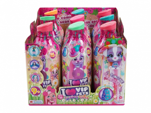 SPECIAL REVEAL: Twist the cap and watch the iridescent curtains open and reveal your VIP Pets Color Boost Doll!