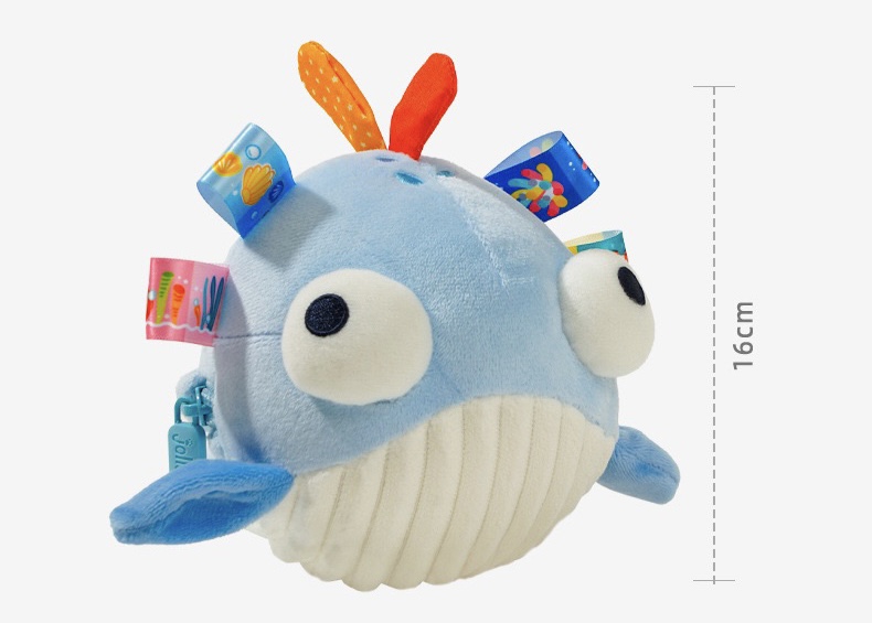 The Sozzy Soft Animal rattle with the it’s music effect . It’s round , fluffy & bright.