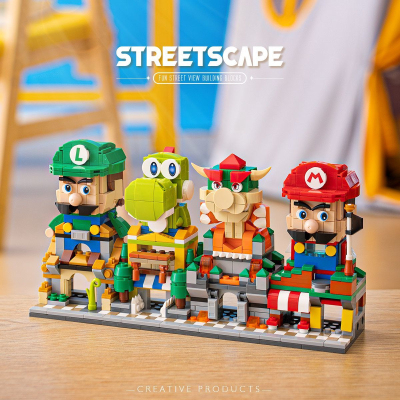 The Super Mario Mini City lego bricks sets with characters like Mario, Lugui & Yoshi. Mama Mia !