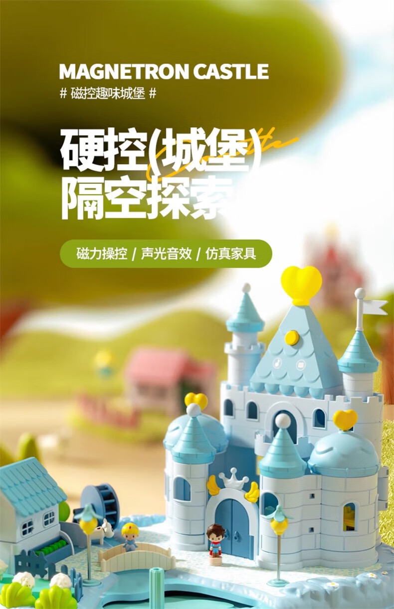 The magnetic princess play house with its characters allows your princess to explore the wonders of a magical castle. It includes light & music effects. Available colors Pink & Blue.
