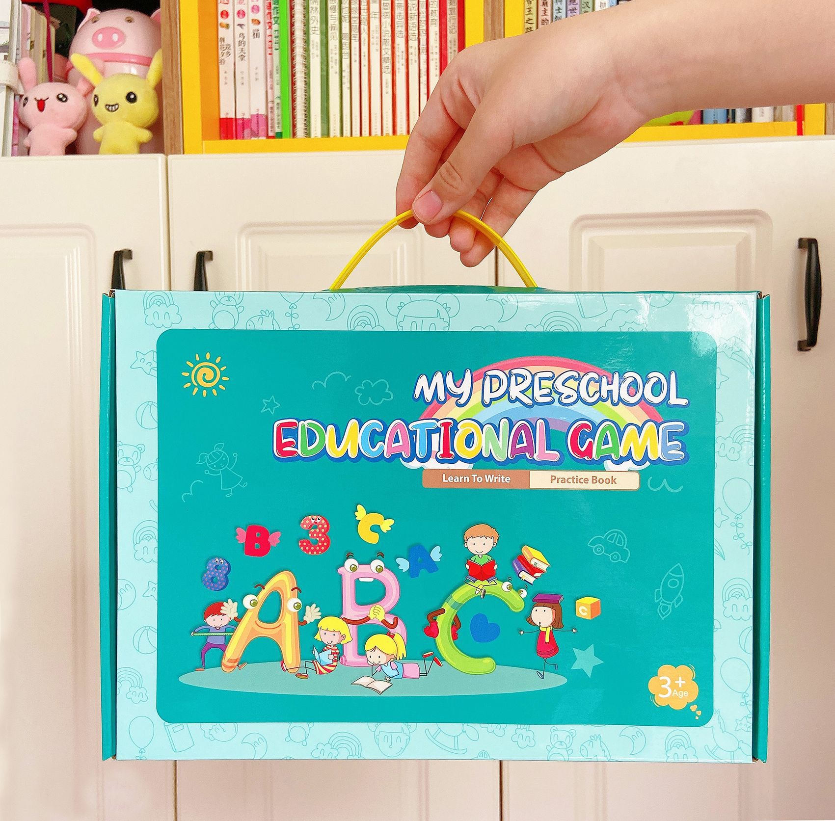 Learn how to write includes tracing letters , lines and shapes as well as words. Wipe the marked words for multiuse . Perfect fun activitiy kit for your kids.