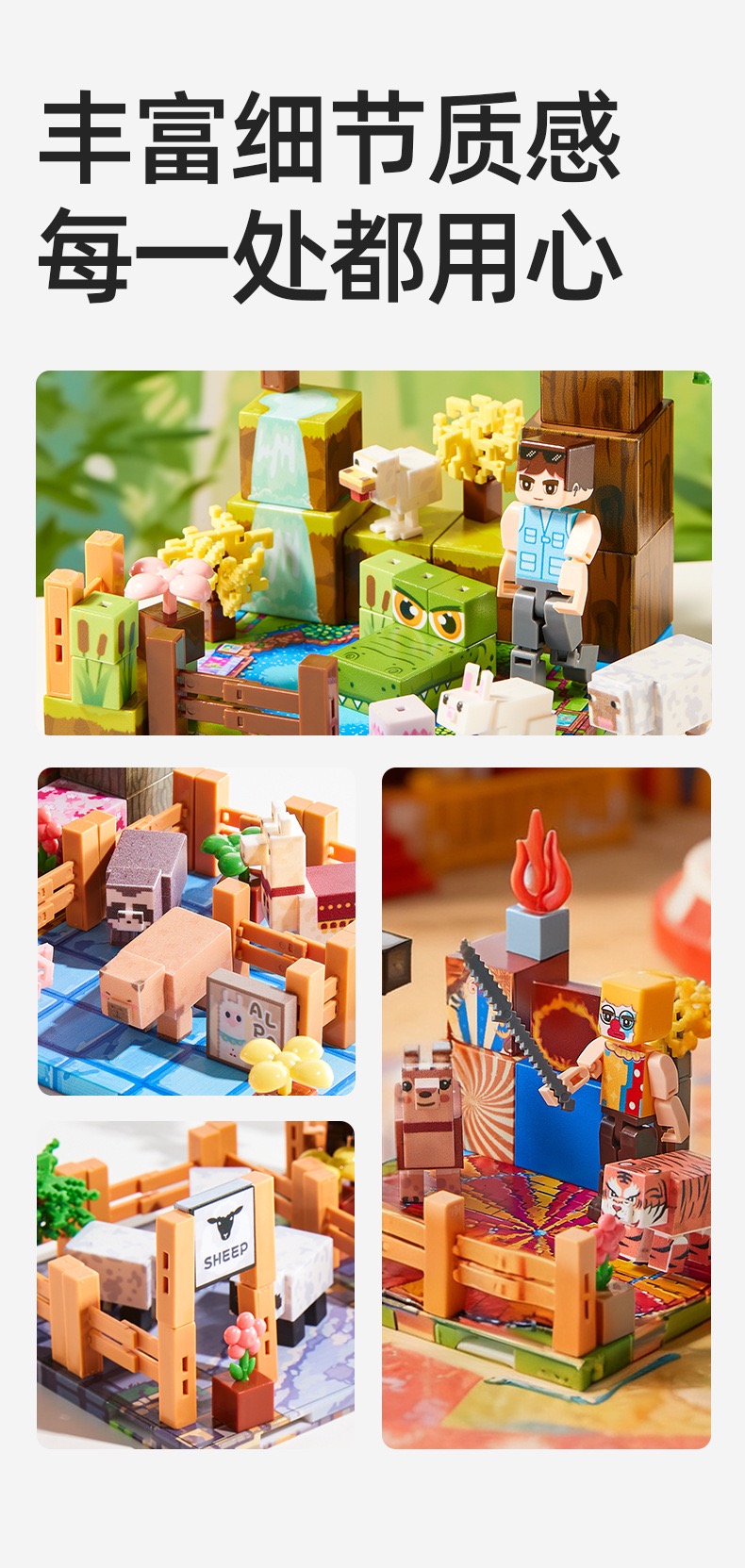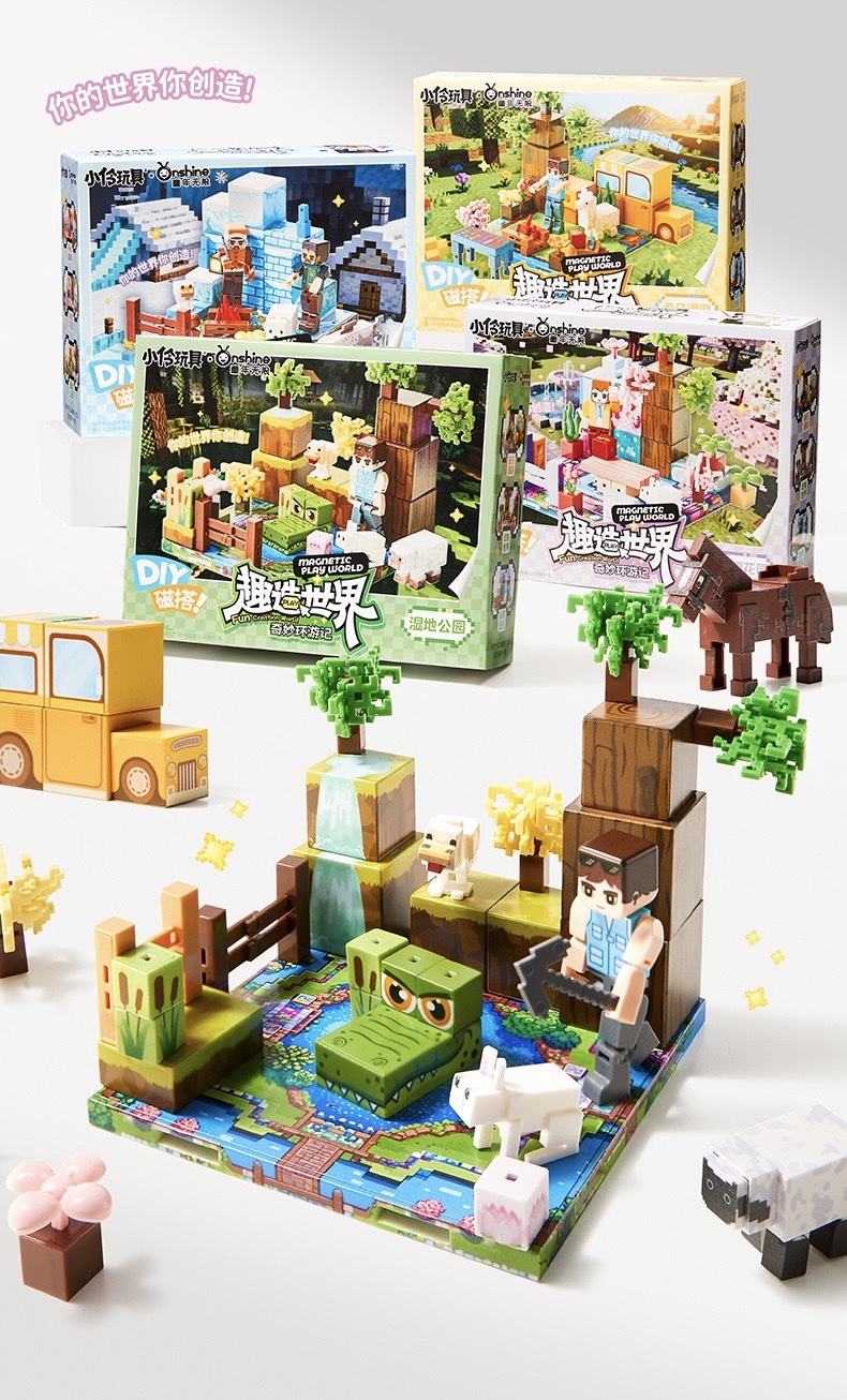 The product emphasizes a “Fun-Creation World” theme where children can build different scenes.