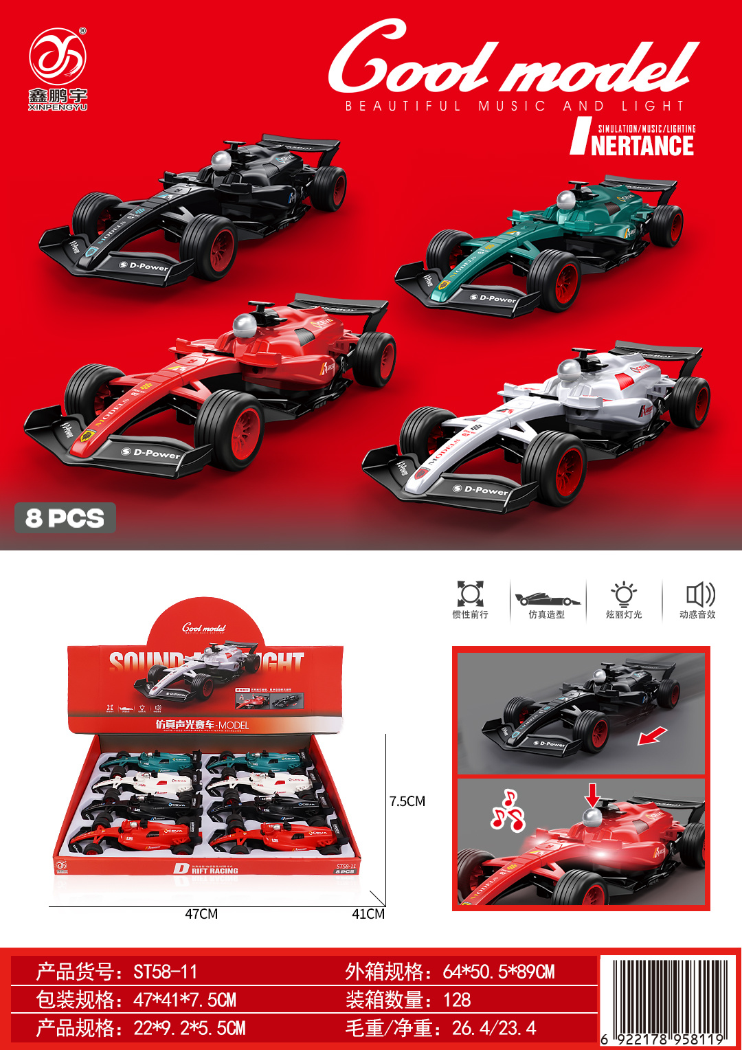 The coolest inertia racing cars are here . Available in 4 colors . Press on the racer & watch how the car lights up.