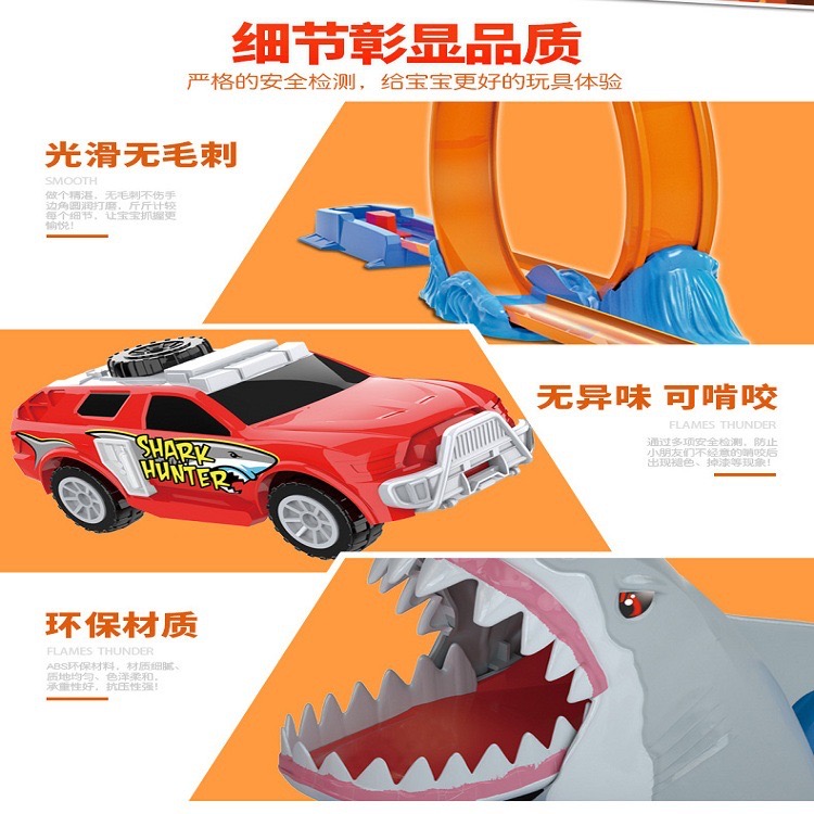 A perfect track for car lovers. Have the car run over the track & into the shark.