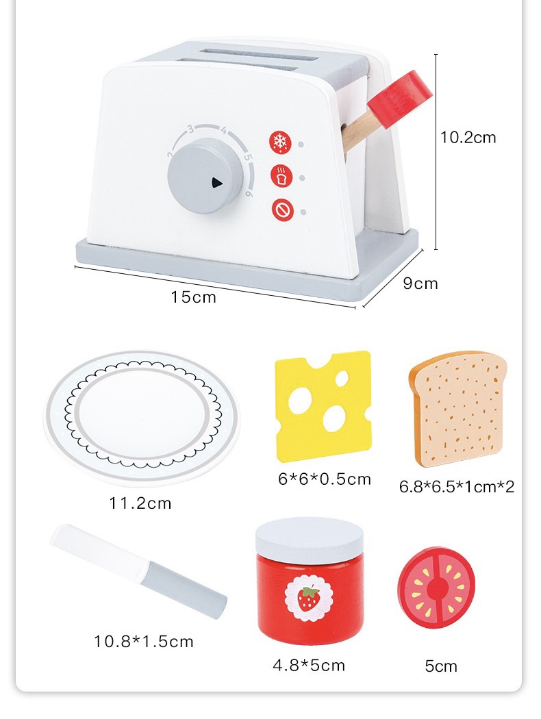 The play pretend wooden toaster with its white colors perfect to match any kitchen. Have your little chefs serve fresh toasts with some cheese & butter. Enjoy pretend play with SML.