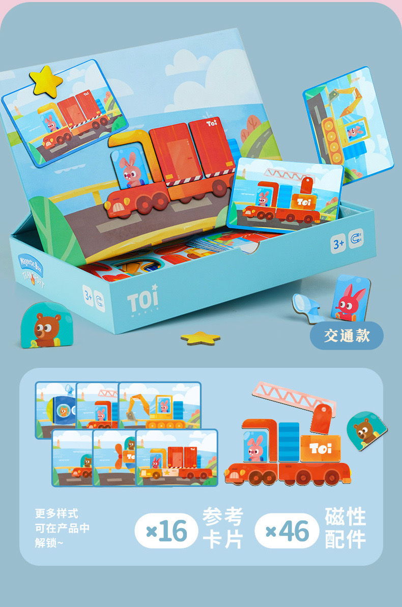 Choose from a variety of magnetic boxes, magnetic puzzles, creative combinations of scenes, letters, shapes and color cognition, many designs available and develop your kid’s concentration, imagination and creativity. Order your Magnetic Transport Box.