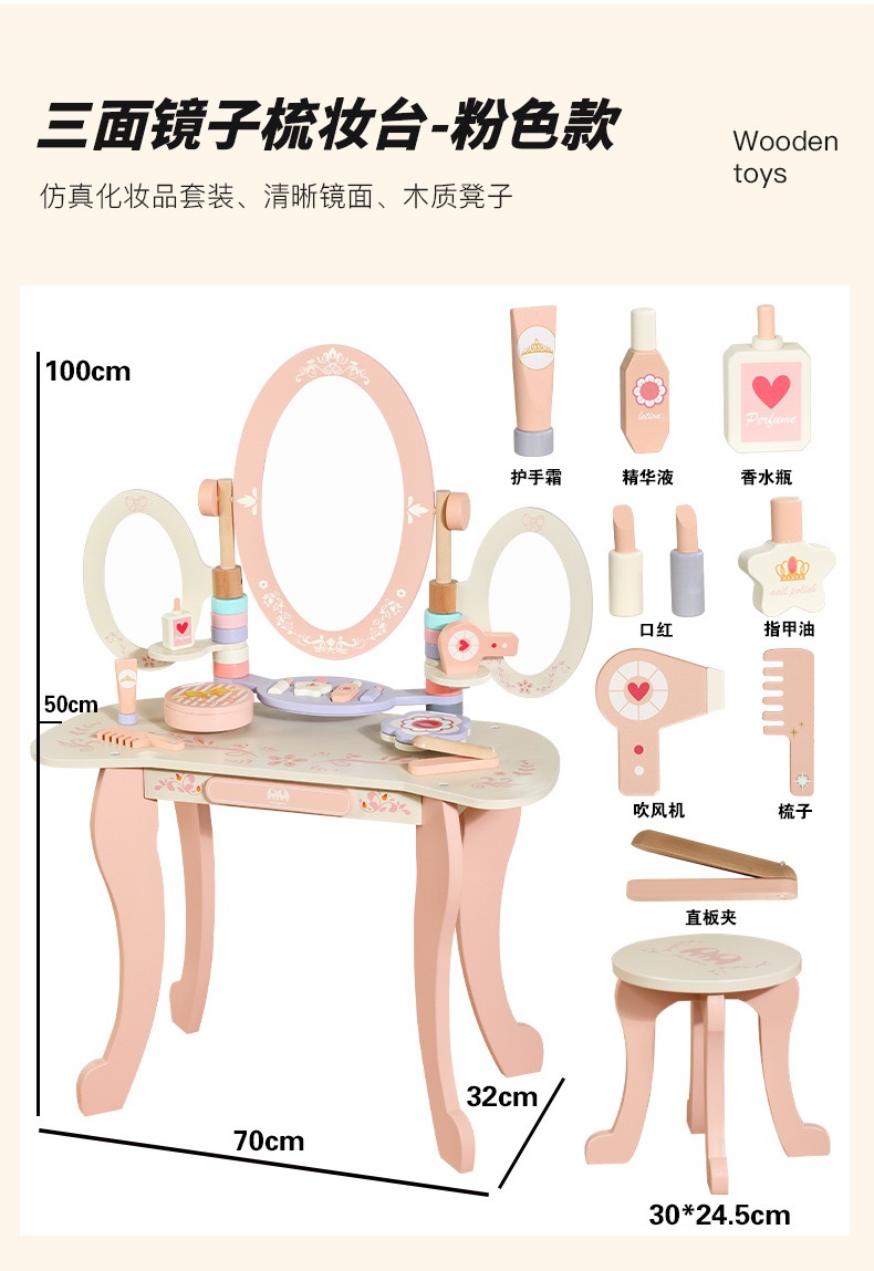 One Elephant Three Mirror Dresser Wooden Table is here . Perfect gift for your princess to discover her inner beauty.