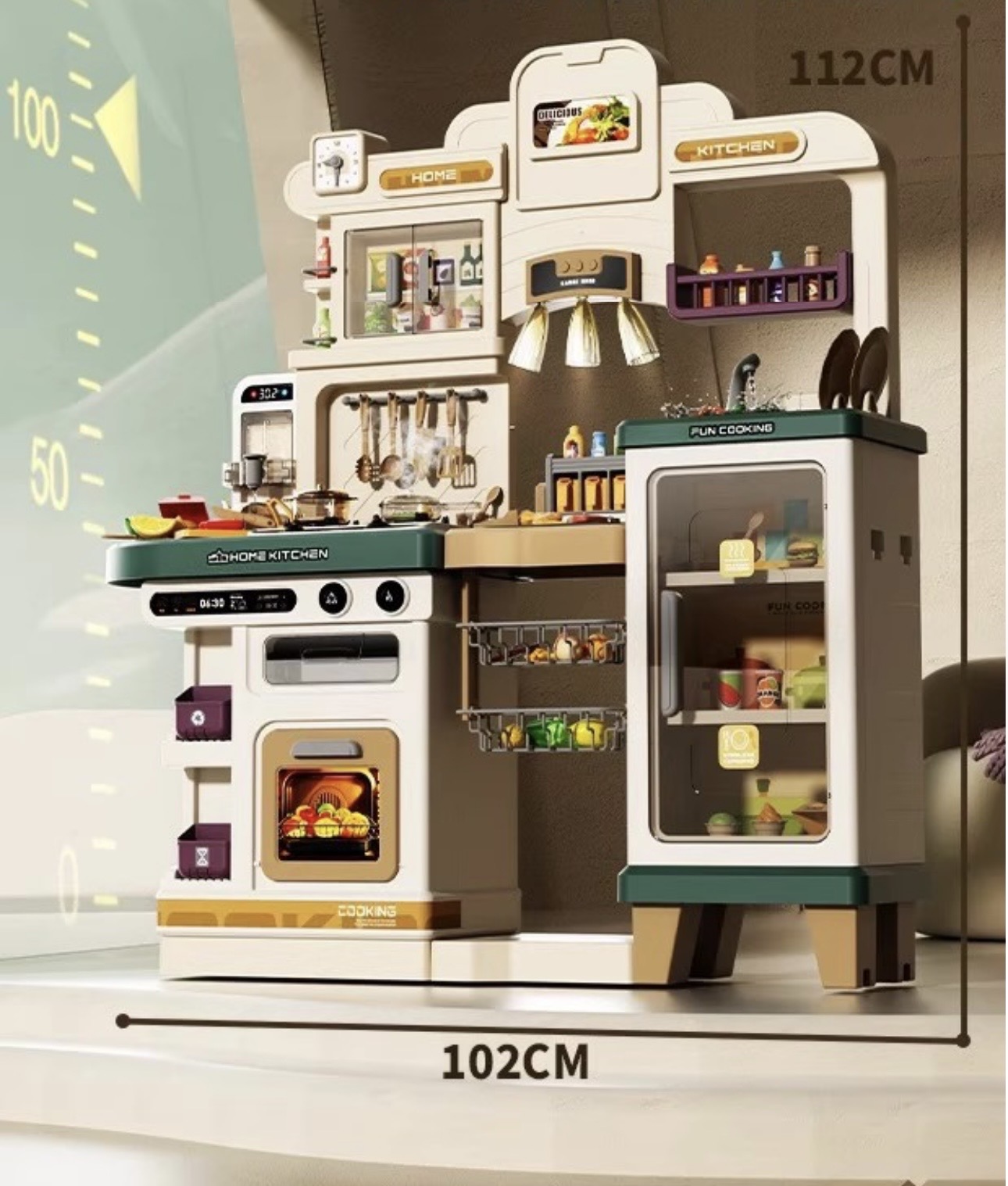 It is a “Western Kitchen Play Kitchen Set” with realistic features designed for role-play.