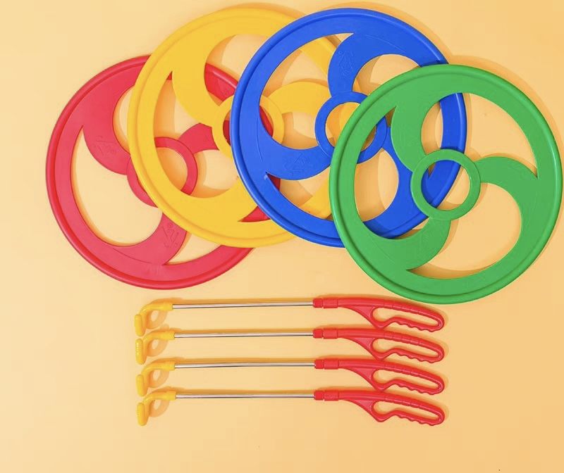 The outdoor balance snesory wind fire wheel is available in 4 colors : Red, Blue, Green & Yellow. It is available in 2 dimensions : 33 & 38 cm.
