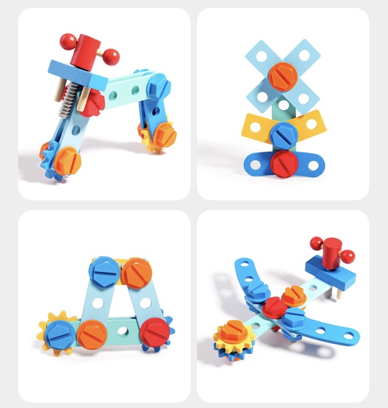 Designed to develop fine motor skills , hand eye coordaintion , problem solving abilities and encourage imaginative play. This set includes various wooden tools like hammer, screwdrivers , wrenches & other construction elements. Suitable for the age 2-5 Years.