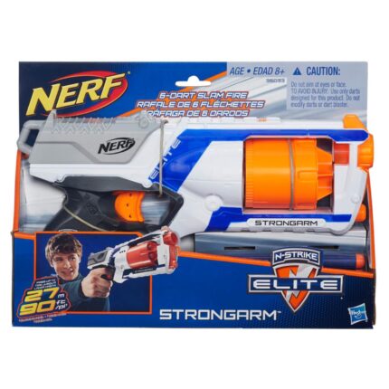 FIRE 6 DARTS IN A ROW: Fire 6 darts in a row from this quick-draw, fast-firing Nerf N-Strike Elite Strongarm toy blaster that shoots darts up to 90 feet (27 meters) and includes 6 Nerf Elite darts